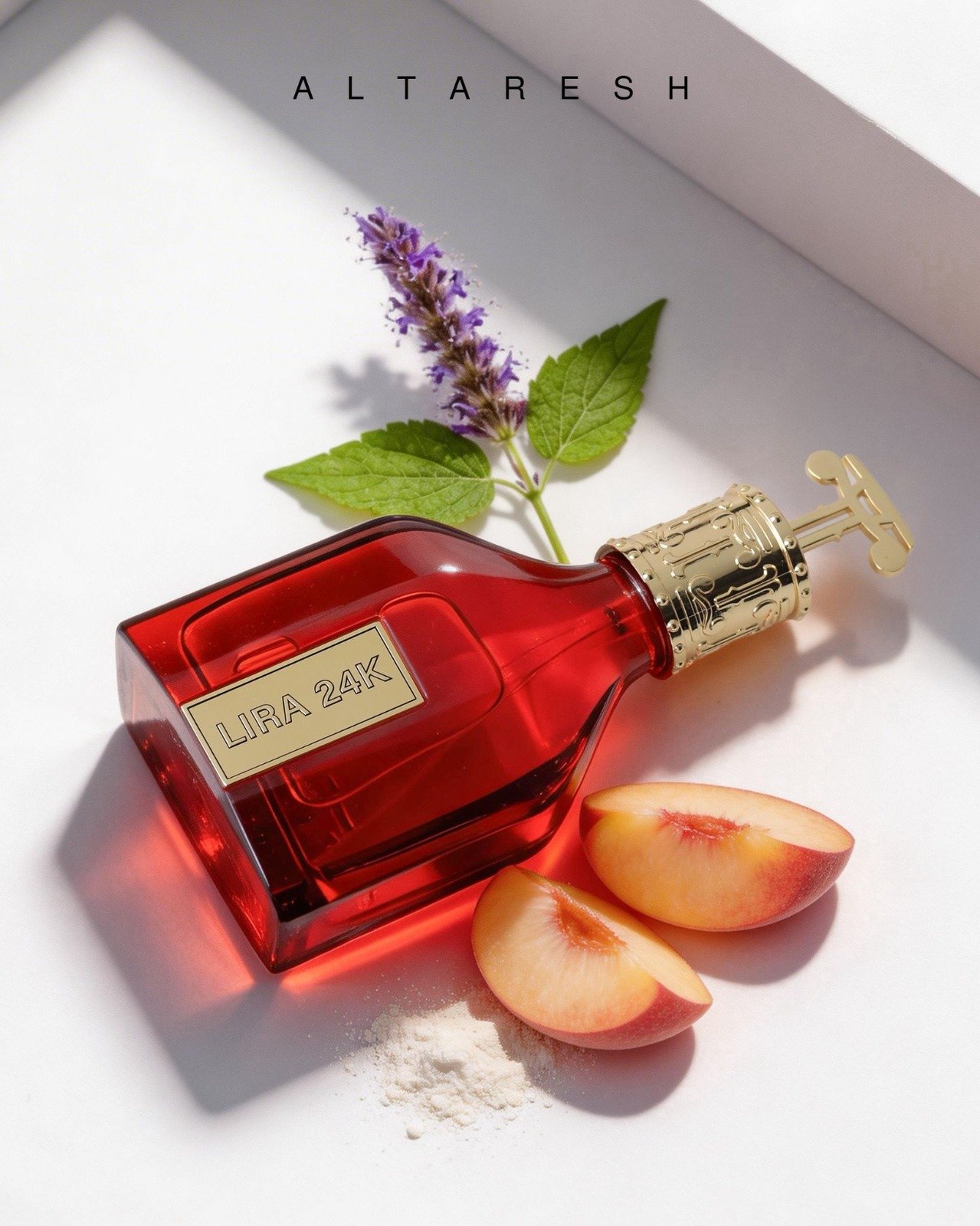 A perfume that combines apple blossom, musk, wild rose, patchouli, and peach.